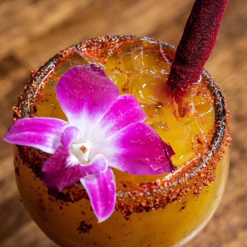 A vibrant blend of Mango, crisp Milagro Silver Tequila and smooth Gran Gala Liquor, finish with Chamoy and Tajin for the prefect sweet, tangy and spicy balance.