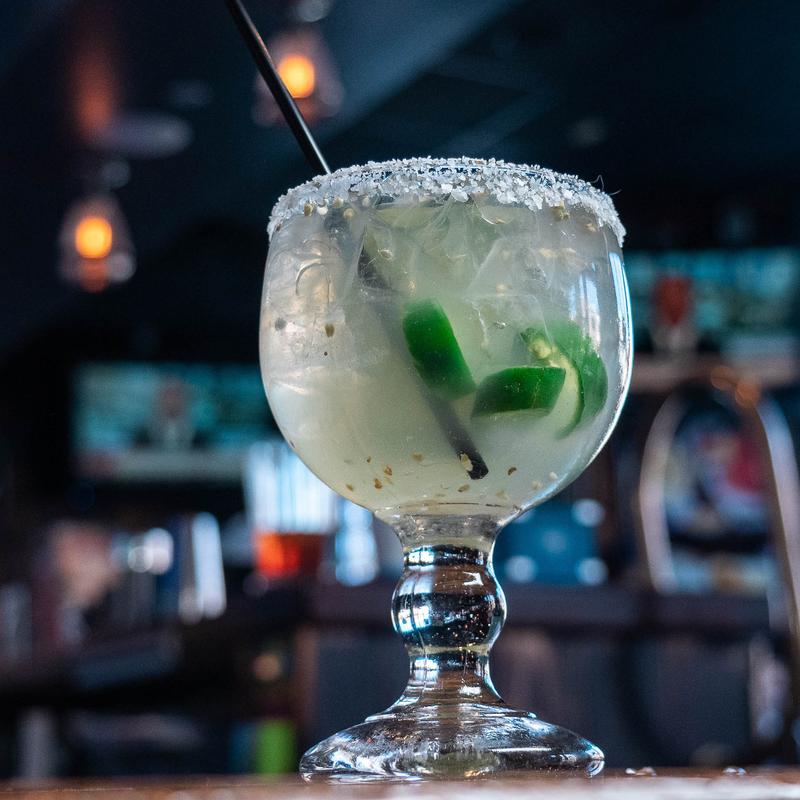 1800 Premium Silver Tequila, Triple Sec, Agave Nectar, and fresh homemade sour mix mixed with fresh sliced jalapeños. Served on the rocks with a salted rim.