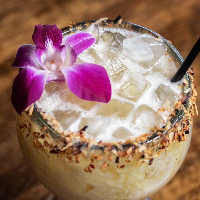 A Salsa's favorite. 1800 Coconut tequila, homeade sour mix coconut milk. Granished with tpasted coconut rim.